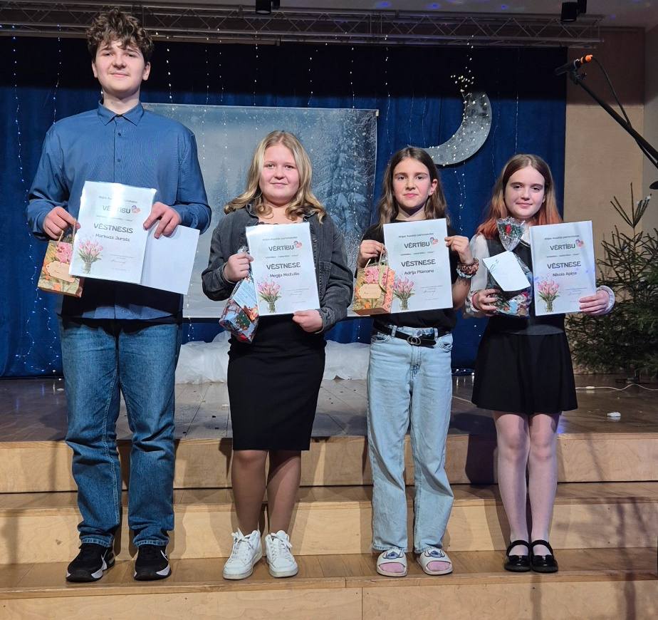 Šogad pirmo reizi skolas vēsturē godinājàm mūsu VĒRTĪBU VĒSTNEŠUS – skolēnus, kuri ar proaktīvu rīcību, pozitīvu attieksmi un līderības prasmēm semestra laikā rādījuši piemēru citiem skolēniem, turot godā skolas vērtības – CIEŅU, ATBILDĪBU un SADARBĪBU